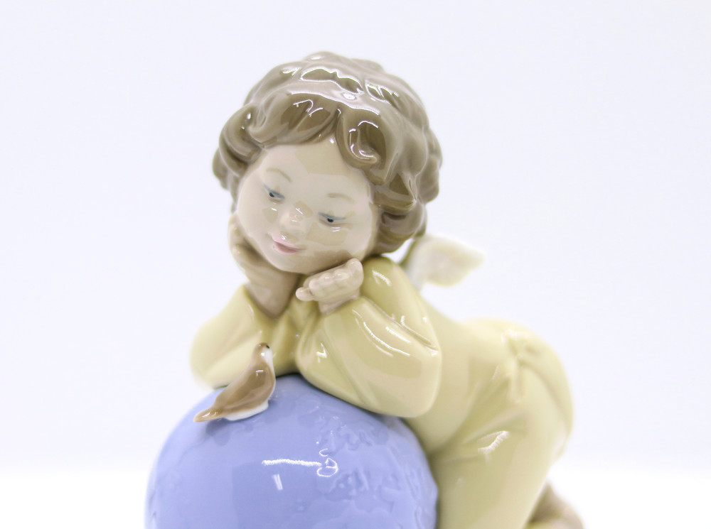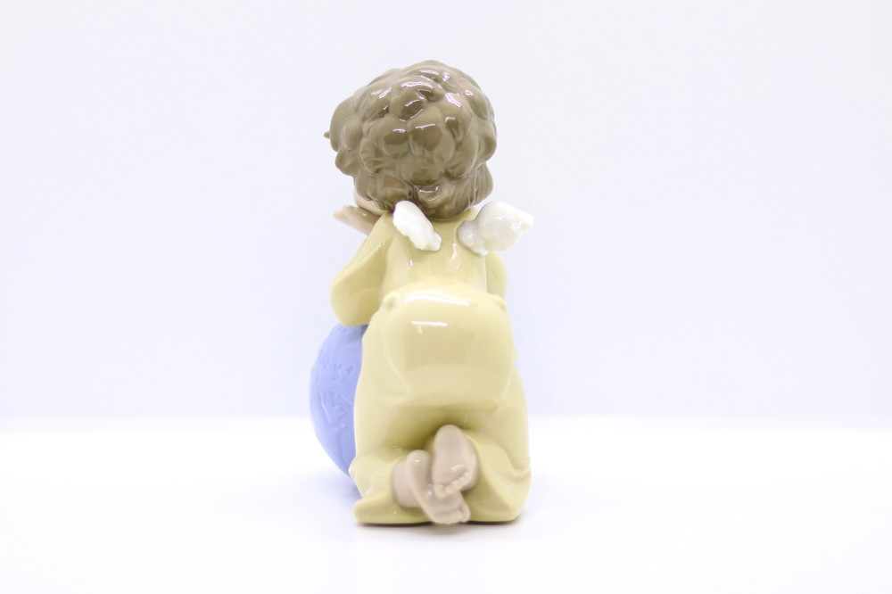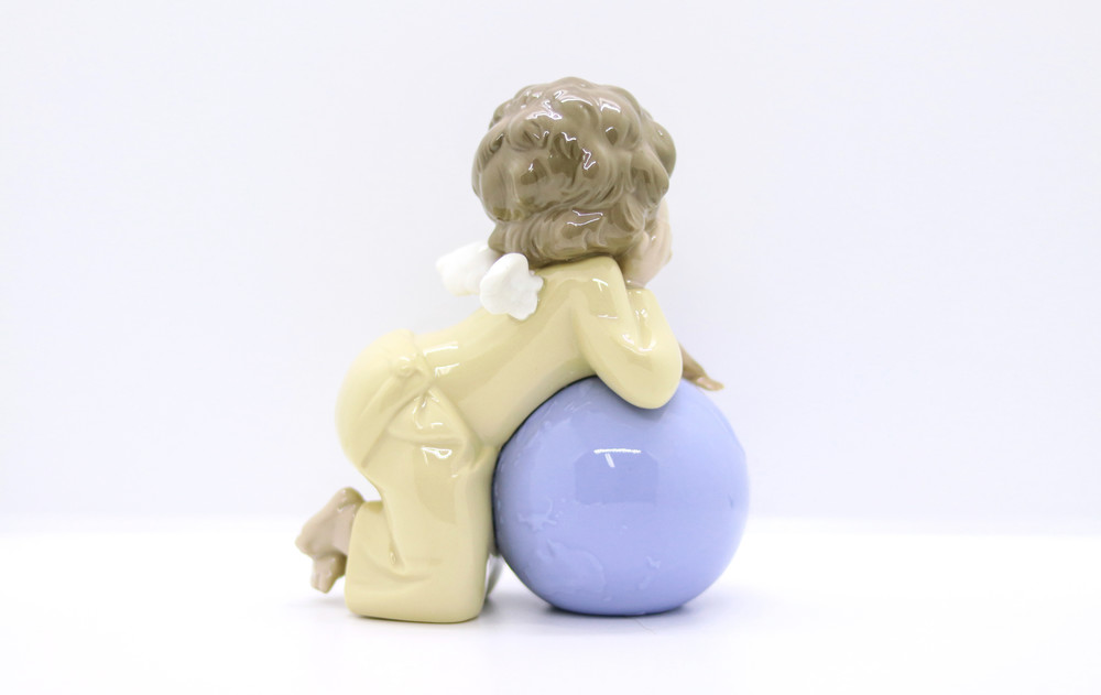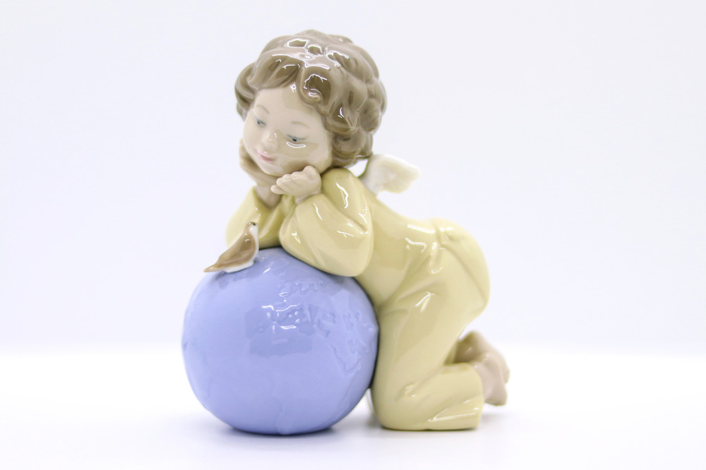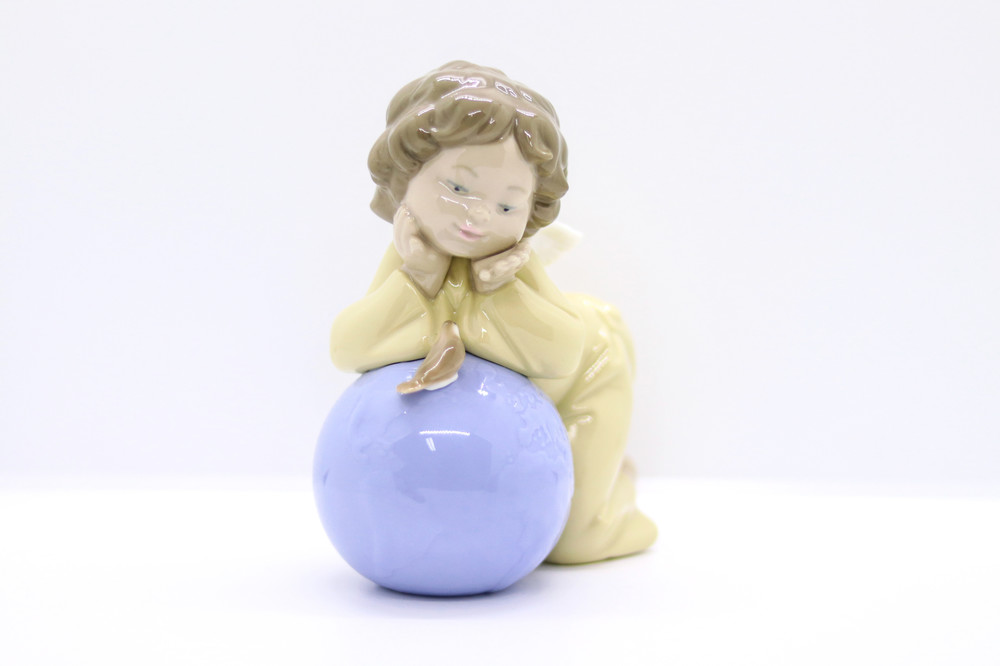 지구본을 품에 안은 작은 아기 천사가